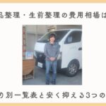 遺品整理・生前整理の費用相場は、荷物の量や部屋の間取りによって大きく変動しますが、一般的には1Kで3万円〜、3LDK以上で20万円〜が目安です。
