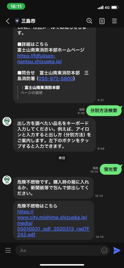 すると三島市では、蛍光管は「危険不燃物」として扱われることが分かりました。